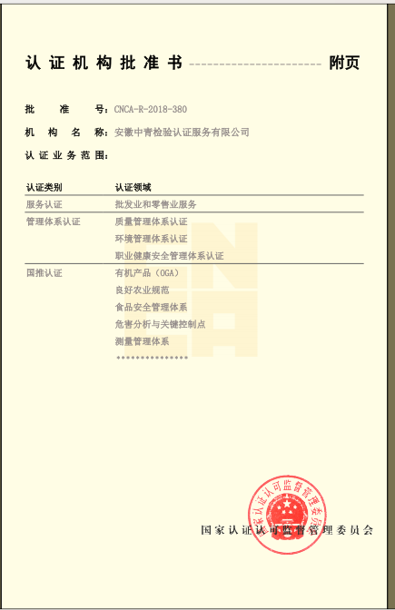 安徽省“食安安徽”品牌認證:評價是根據(jù)國際通行的合格評定方式,依據(jù)“食安安徽”品牌認證評價標準及相關規(guī)定,對申請“食安安徽”認證評價的食品生產(chǎn)經(jīng)營者和特定區(qū)域進行的第三方認證評價活動。“食安安徽”品牌認證評價標準包括企業(yè)認證和區(qū)域評價兩大類,企業(yè)認證對象包括食用農(nóng)產(chǎn)品生產(chǎn)者、食品生產(chǎn)企業(yè)、食品流通企業(yè)、餐飲服務企業(yè),區(qū)域評價對象包括食品生產(chǎn)基地、食品生產(chǎn)園區(qū)、餐飲安全街區(qū)、食品安全小鎮(zhèn)、安徽省食品安全示范縣(市、區(qū))。